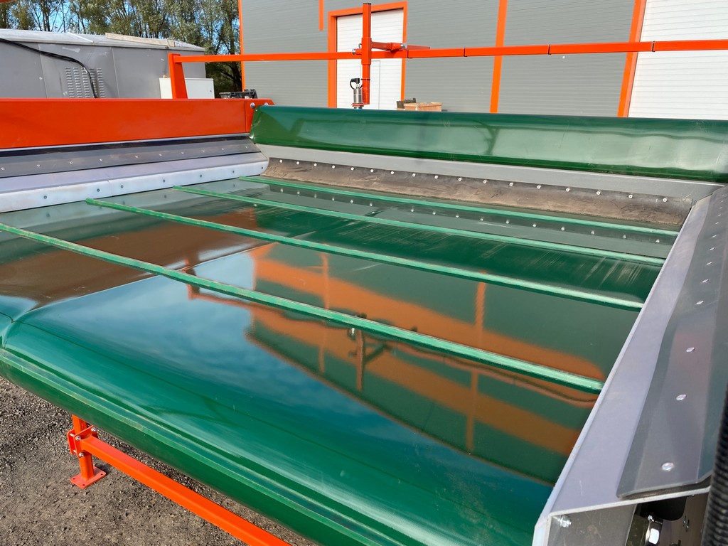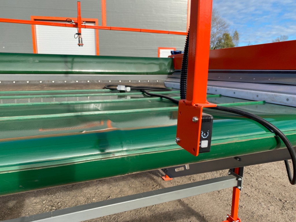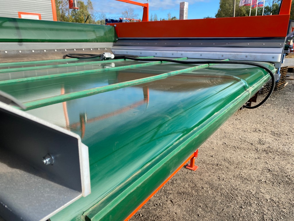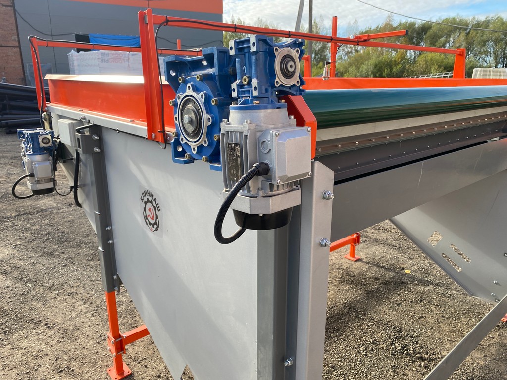 - Полиамидные пластины по краям транспортёра обеспечивают бережное скольжение потока, исключают лишнее трение продукта о металл и предотвращают попадание грязи во внутренний механизм конвейера.