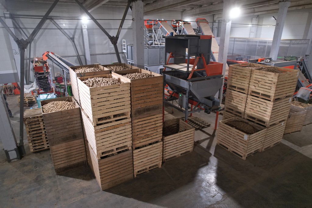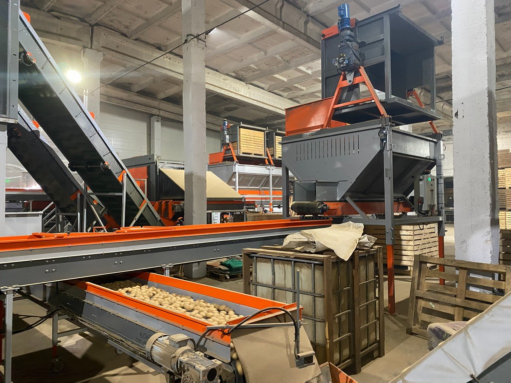 - Размещение опрокидывателя на единой раме непосредственно над накопительным бункером очень удобно и значительно экономит ценную площадь хранилища, позволяя легко встраивать эту установку в любую конфигурацию технологической линии.