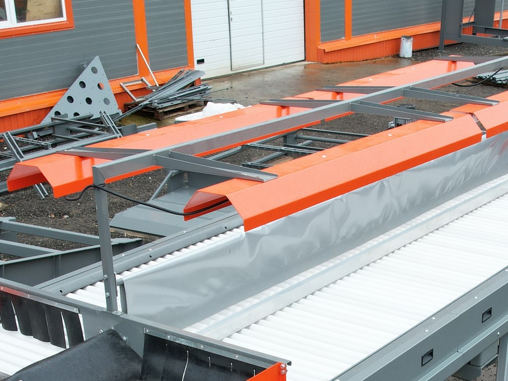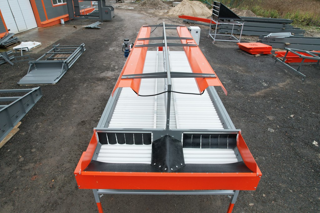 - На разделитель потоков установлена тентовая завеса, облегчающая оператору заброс некондиции, не позволяющая отбракованному продукту выпрыгивать из него на противоположную сторону.