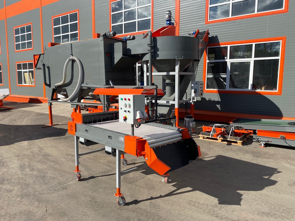 - Выгрузная горловина оснащена мягкой резиной и механизмом регулировки угла наклона. Это позволяет встраивать стол в любые существующие линии.
