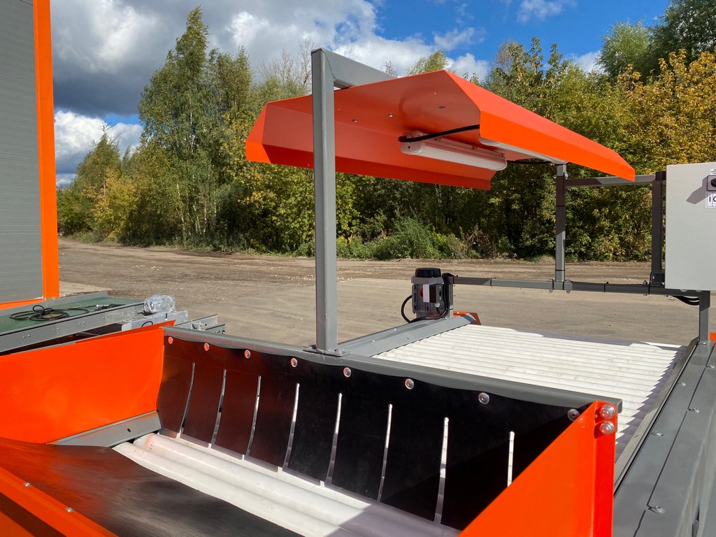 - Главной отличительной особенностью данной модели являются быстросъемные боковые панели. Их быстрое снятие предоставляет полный доступ к внутренней части роликового полотна по всей его длине для срочной очистки. Это особенно актуально при инспекции уже проросшего картофеля.
