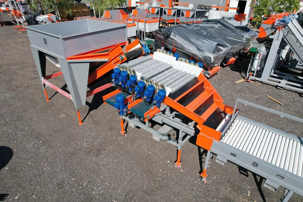 Калибровочные сита для рамочных сортировочных калибровщиков РСК-4 /РСК-5 имеют разные фракции и используются для калибровки продукта поступающего при помощи приемно-подающих бункеров БК-12, БК-26 и Технологических загрузочных транспортеров ТЗК-С, после чего по Двухсекционными телескопическими транспортерами ТТ 17-80Г, ТТ 17-80ЭЛ, ТТ 14-80Г, ТТ 14-80ЭЛ и односекционными транспортерами Т 6-80Г / Т 9-80Г, Т 6-80Эл / Т 9-80Эл, Т 12-80Г и Т 12-80ЭЛ поступает дальше по линии на Инспекционные роликовые РИ-3Т, РИ-4,5Т, РИ-3К, РИ-3Т-1-4, РИ-3Т УРФ и ленточные ЛИ-3, ЛИ-6 столы.