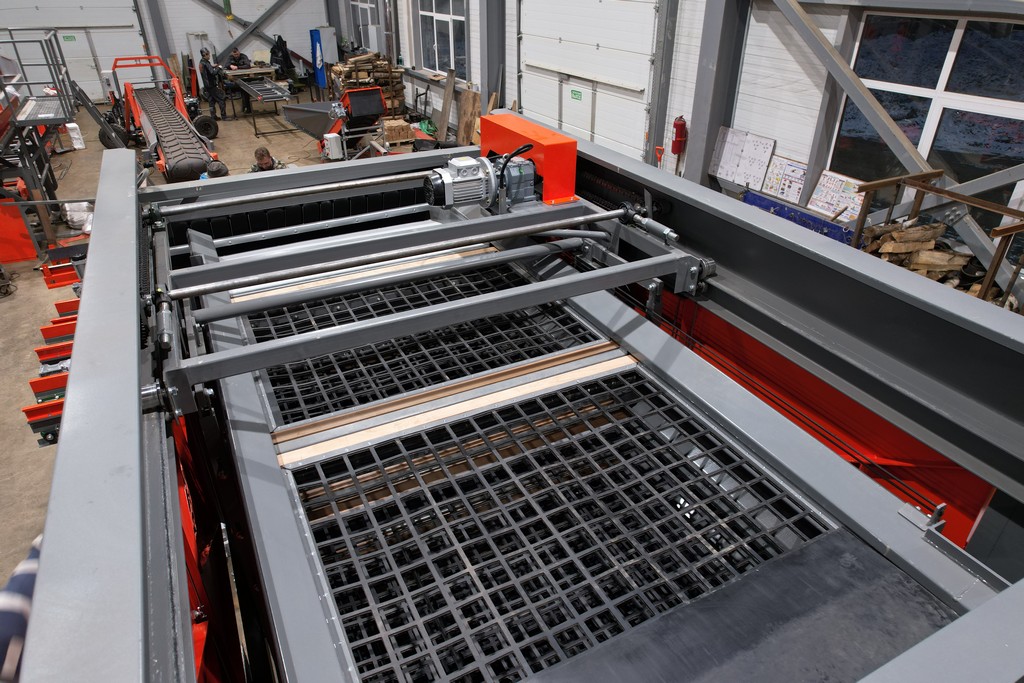 Продукт по загрузочному транспортеру поступает на верхнюю наклонную поверхность, состоящую из двух обрезиненных сортировочных сит для наиболее крупной фракции и движется по ней к выгрузному лотку.