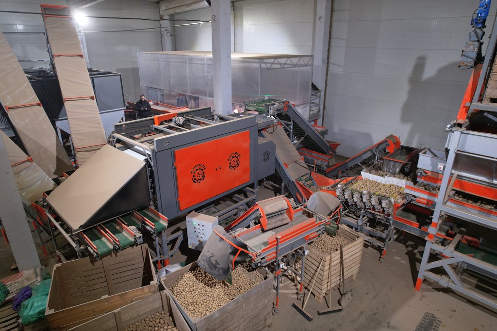 Застрявшие в ситах клубни бережно проталкиваются специальным автоматическим механизмом подбоя на движущейся по каждому слою сит каретке. Мусор и некондиция после последнего сита попадают в донный улавливающий бункер и далее на транспортер или в тару.