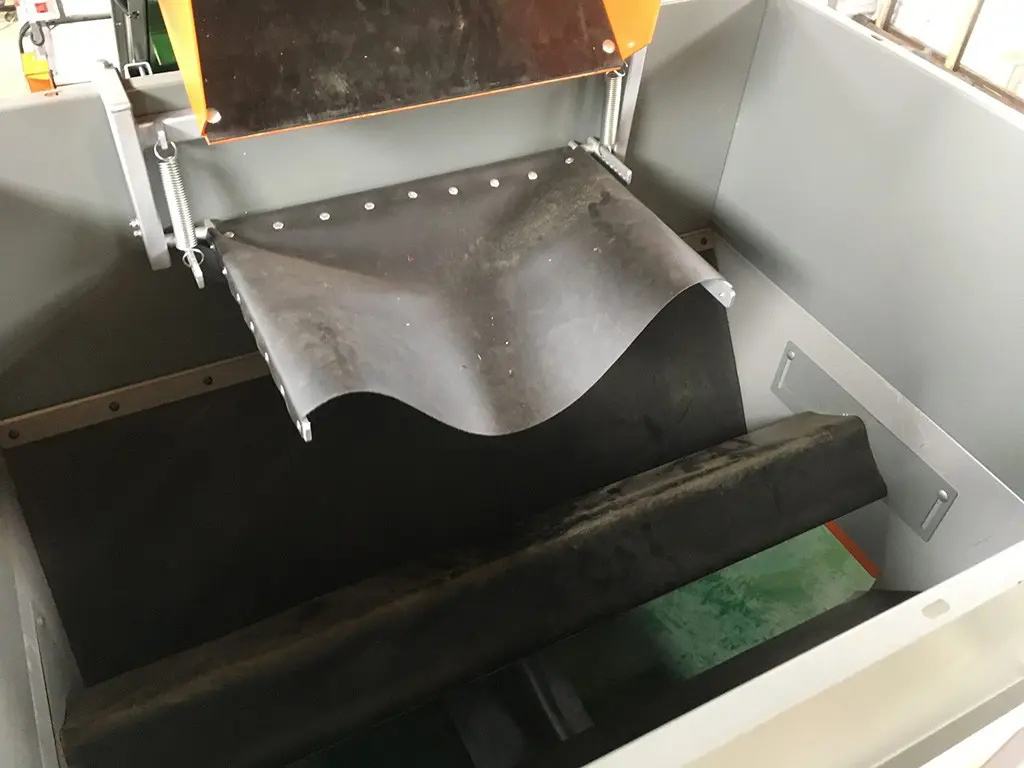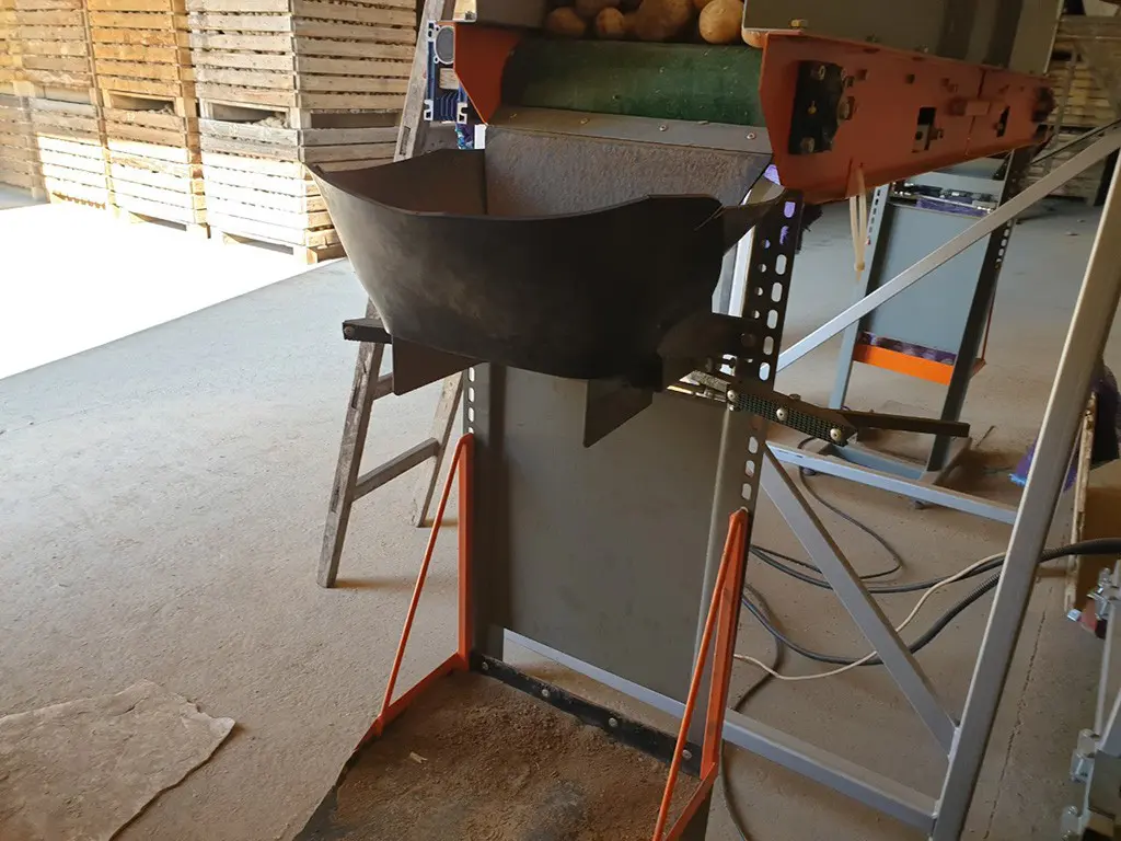 - Улавливающая горловина, донный угловой рассекатель и нижняя наклонная часть бункера-накопителя обклеены демпферным материалом исключающим травмирование продукта.