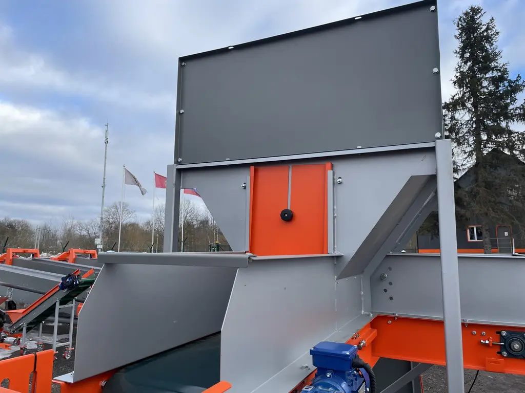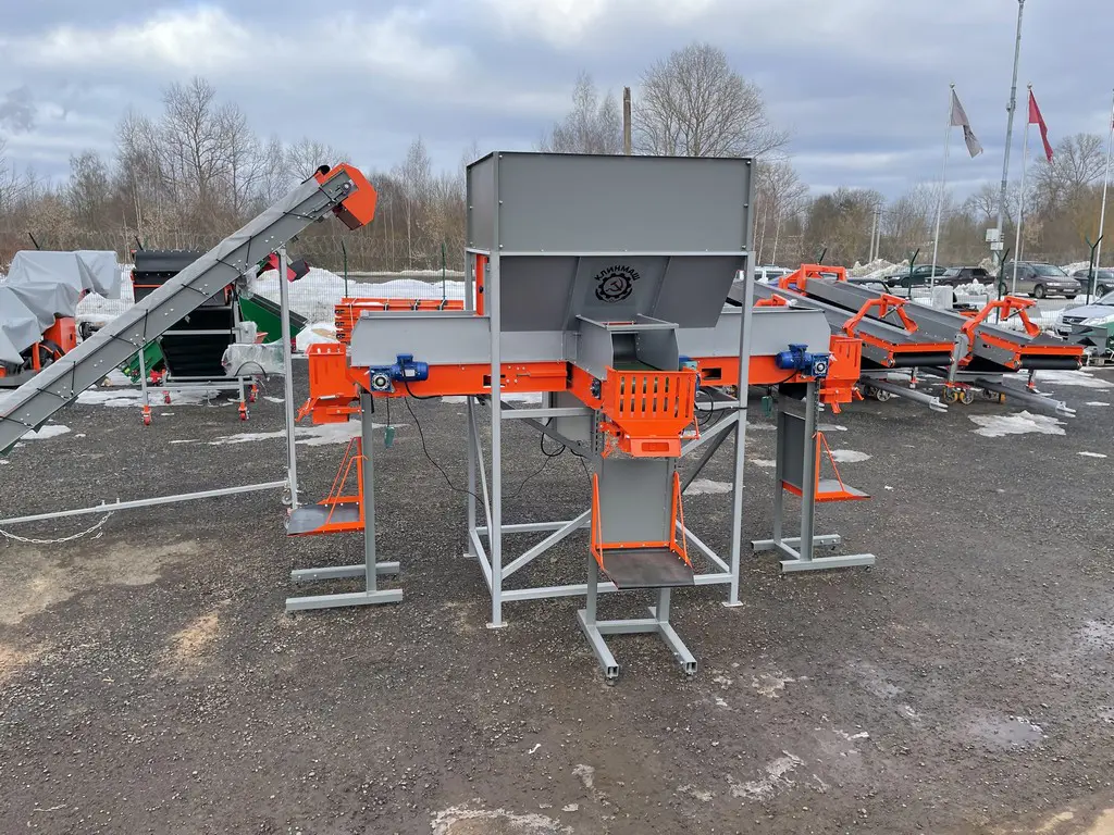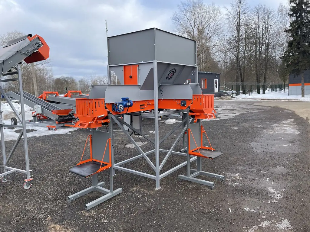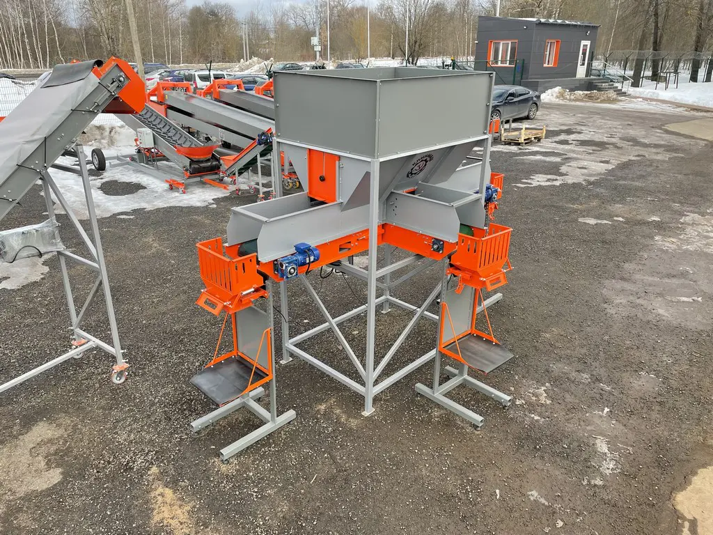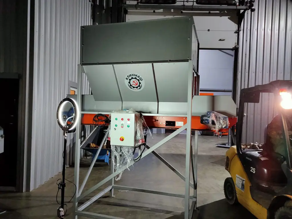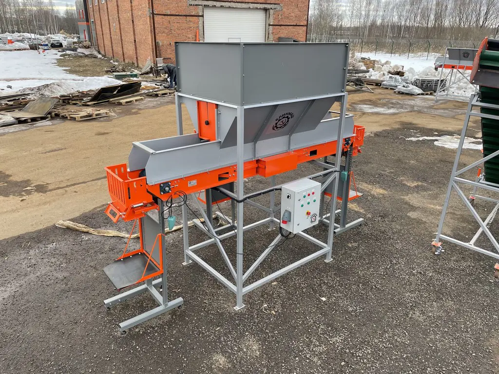 - Загрузочный конвейер имеет гаситель падения, что исключает травмирование продукта при загрузки в накопительный бункер и может отдельно использоваться для других целей.
