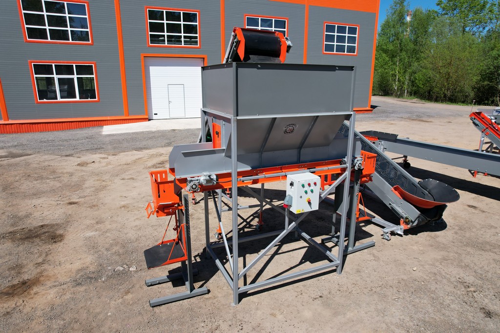 - Загрузочный конвейер имеет гаситель падения, что исключает травмирование продукта при загрузки в накопительный бункер и может отдельно использоваться для других целей.