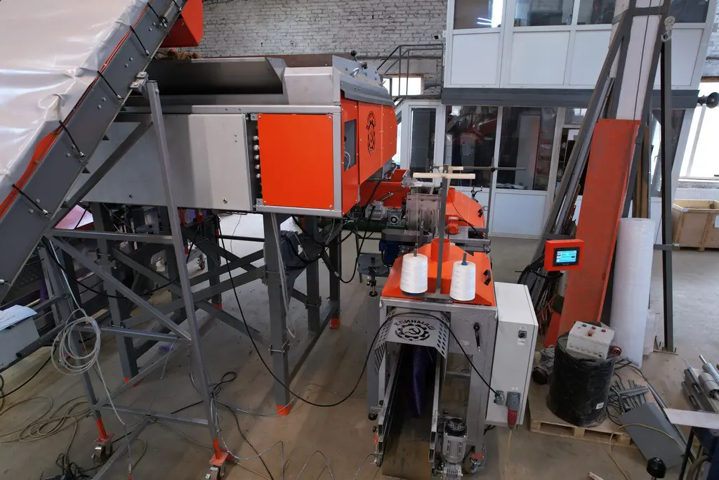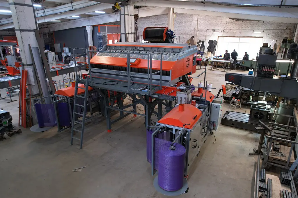 - Реверсивный разгрузочный ленточный транспортер позволяет работать одновременно с двумя упаковочными машинами.