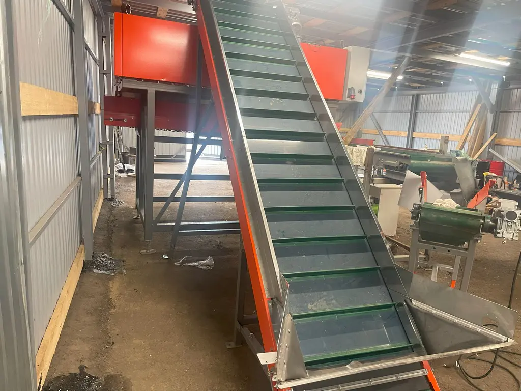 - Реверсивный разгрузочный ленточный транспортер позволяет работать одновременно с двумя упаковочными машинами.