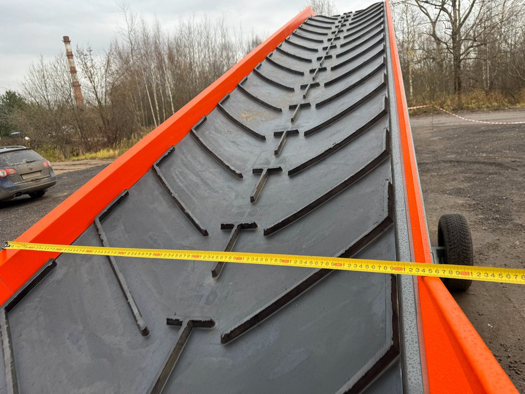 - Многослойная резинотканевая шевронная лента с высотой шеврона 17 мм (загрузочные лопатки не приклеены, а являются частью рельефа ленты).