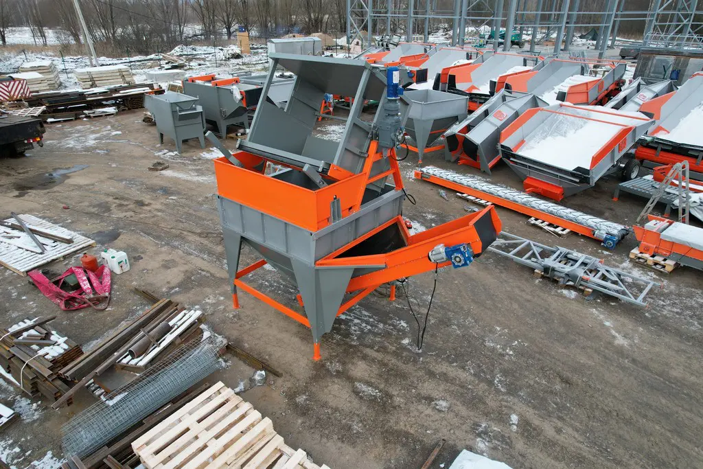 - Выгрузным транспортером производится равномерная подача продукции из бункера на технологическую линию.