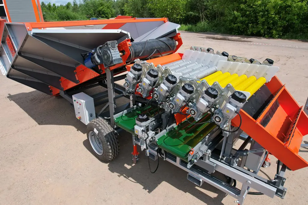 Продукт из самосвального транспортного средства, контейнеров, биг-бегов или другой тары попадает в бункер объемом 5,4 кубических метра, с шириной донного ленточного транспортера 1000 мм. По широкой ленте конвейера продукт равномерно, с регулируемой скоростью, подается на линию закладки или переработки. Дополнительно можно устанавливать ворохоотделитель, представляющий собой конструкцию из 6 вращающихся валов с резиновыми звездочками, витыми металлическими или полиуретановыми спиралями, а также гладкими нержавеющими трубами, чаще применяемыми для лука и чеснока. Проходя по этим валам продукт очищается от мелочи, мусора, земли и камней, которые проваливаются между ними и попадают в мусорный контейнер или на отводящий транспортер.