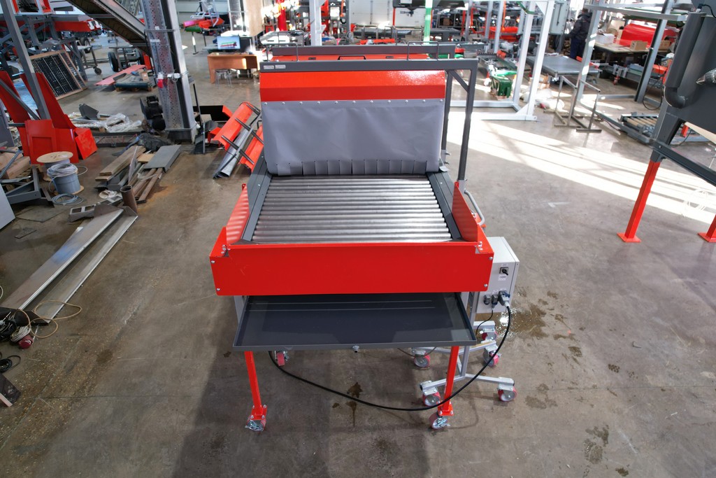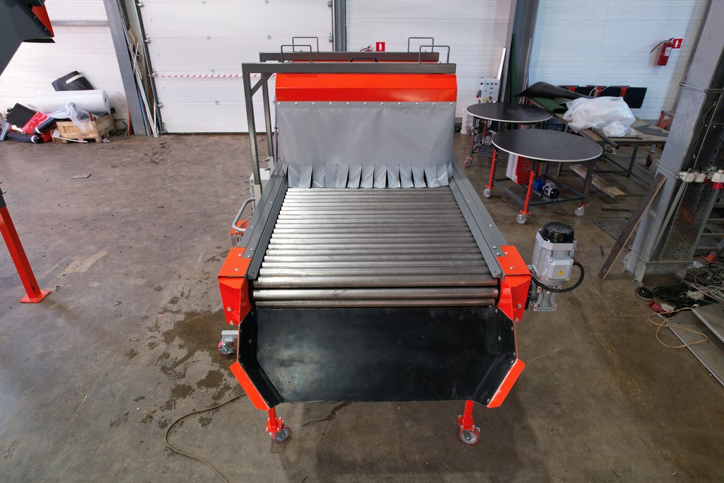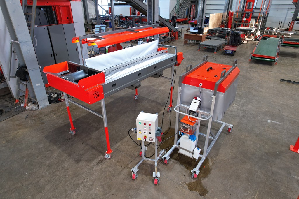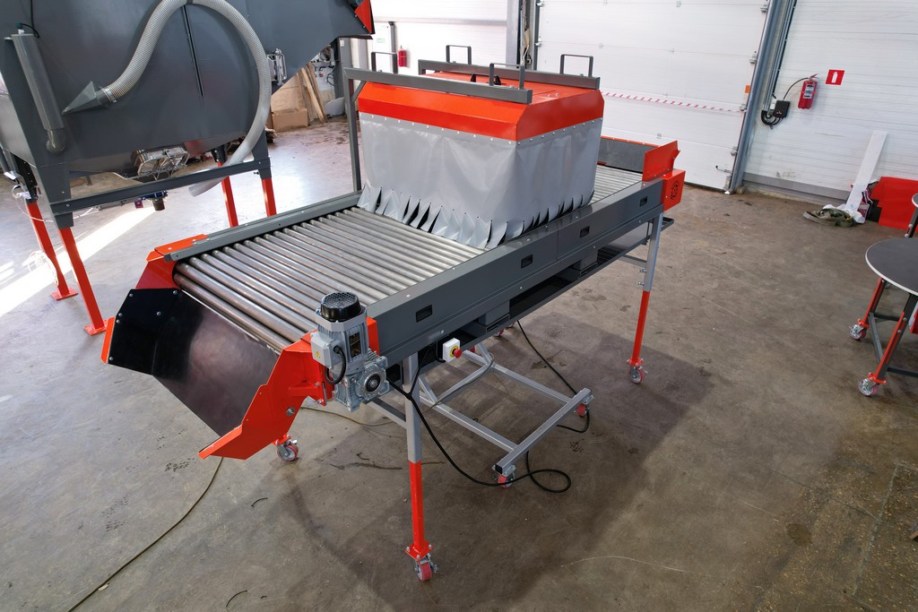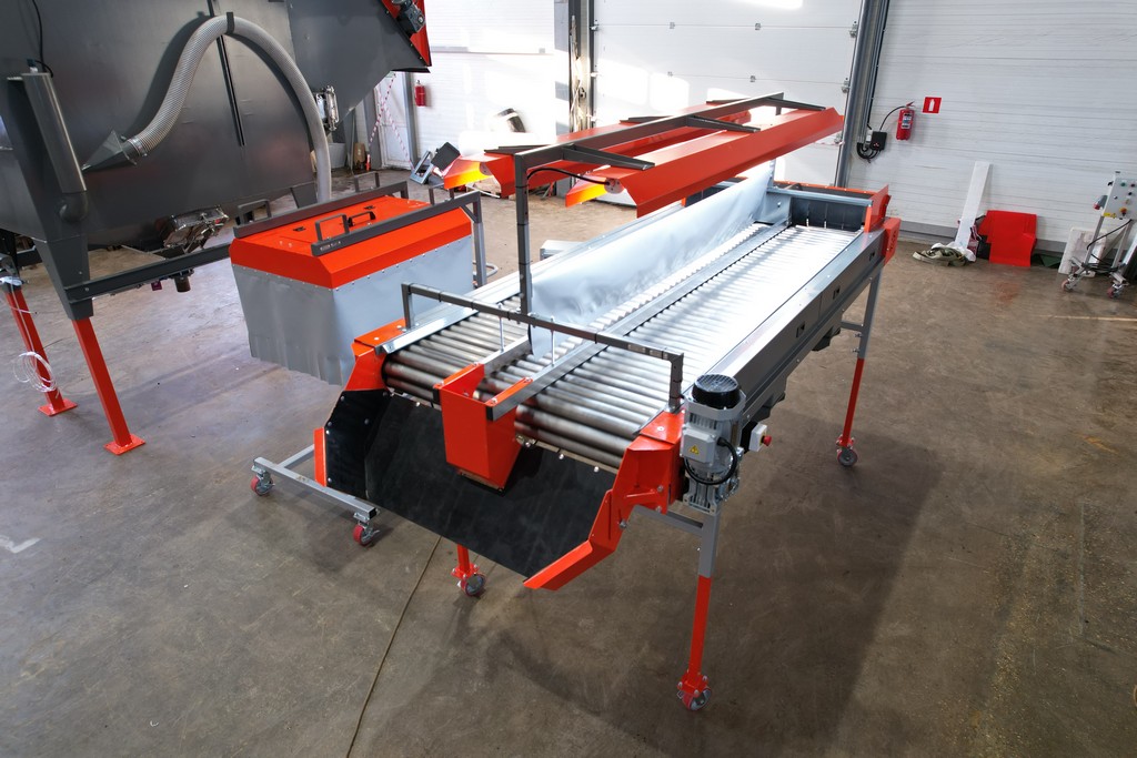 - Протравливающий комплекс создан на основе роликового инспекционного стола особой комплектации. По окончании обработки клубней подкатная протравливающая установка распыления откатывается на склад. На инспекционном столе устанавливают разделители потоков, освещение и выгрузной лоток. И данный инспекционный стол можно продолжать использовать для сортировки продукта.