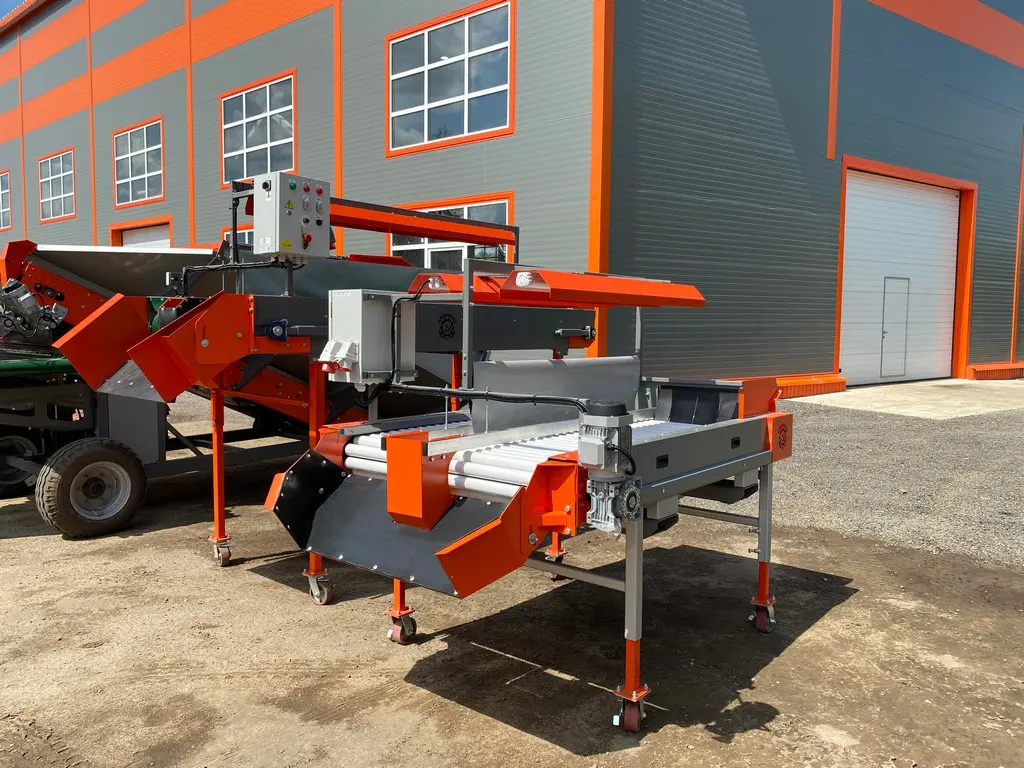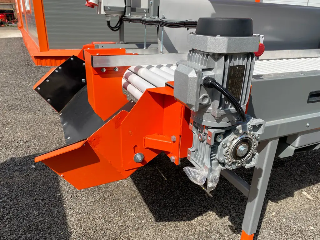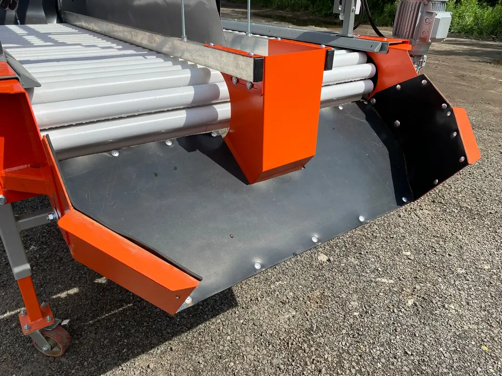 - Главной отличительной особенностью данной модели являются быстросъемные боковые панели. Их быстрое снятие предоставляет полный доступ к внутренней части роликового полотна по всей его длине для срочной очистки. Это особенно актуально при инспекции уже проросшего картофеля.