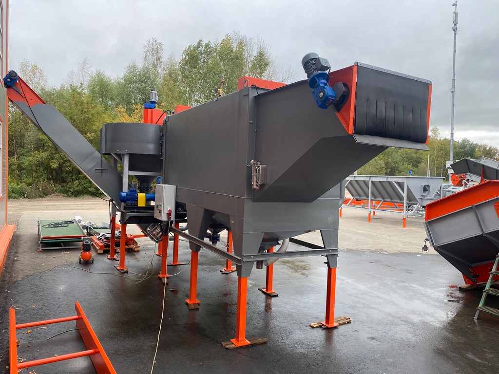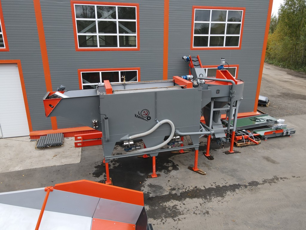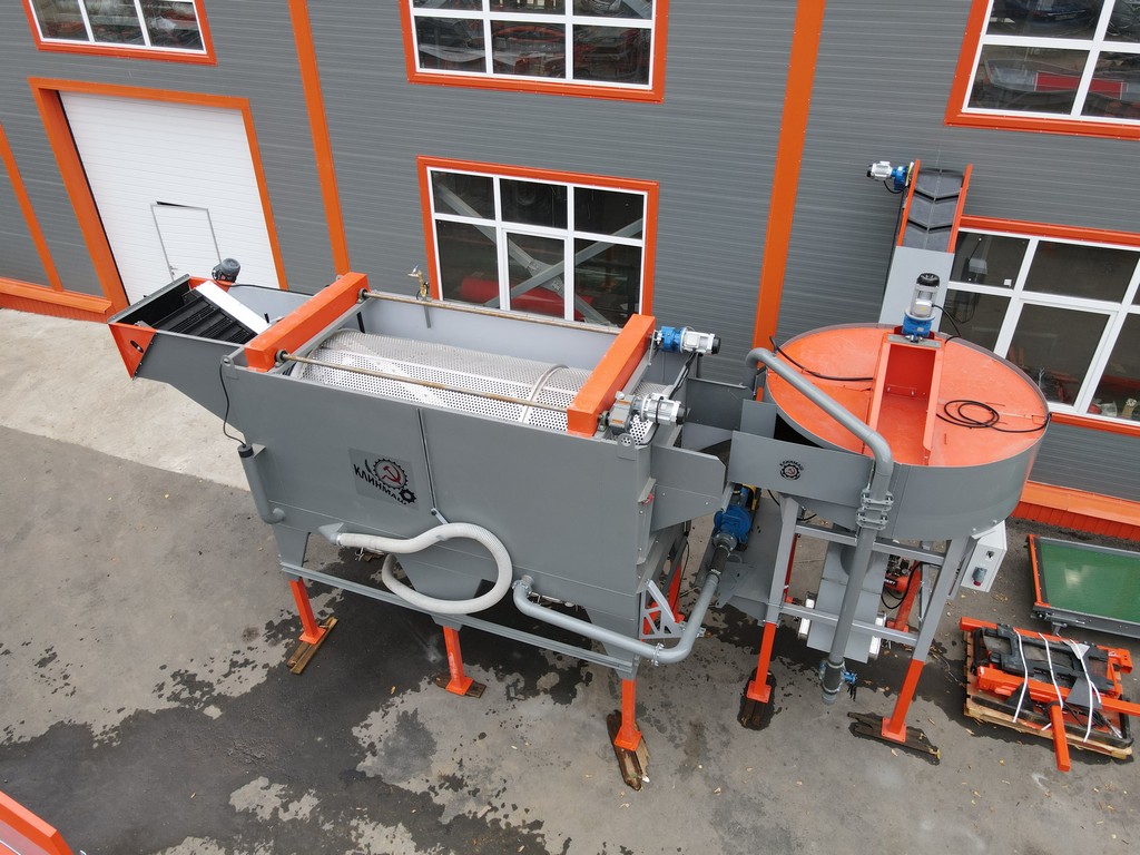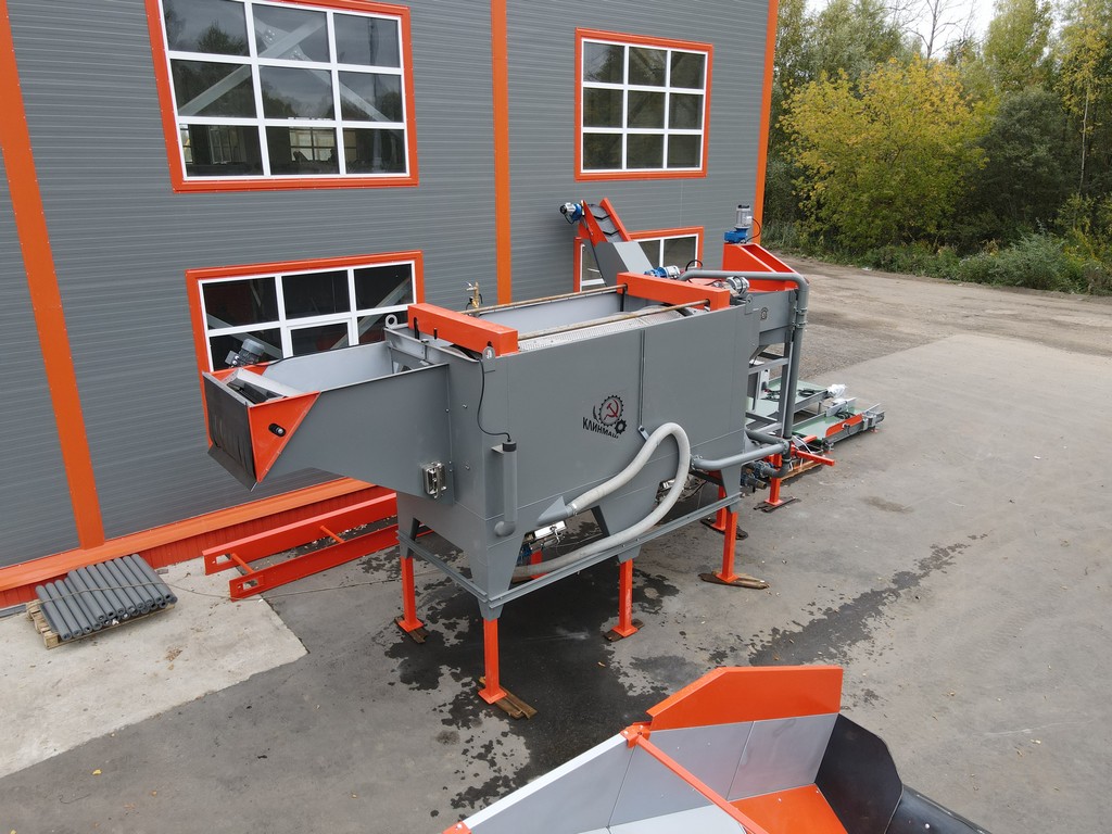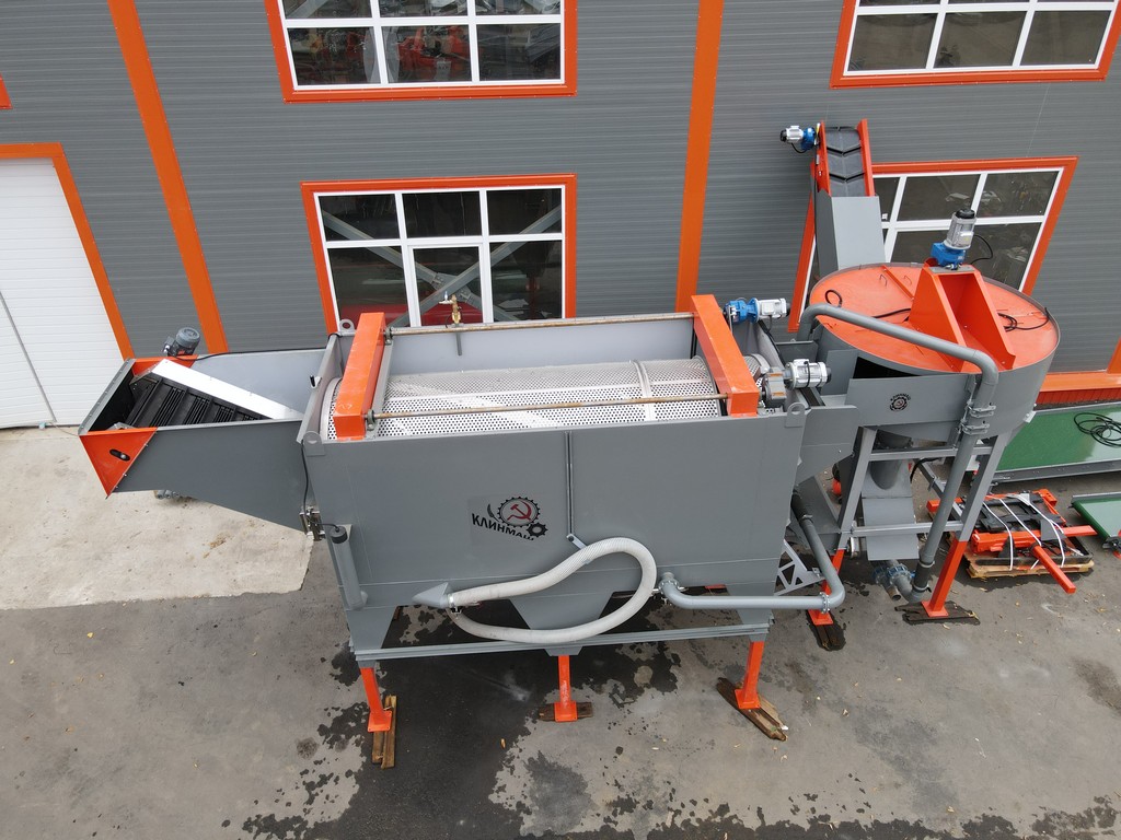 - Камнеуловитель может работать как отдельная машина. Для этого он комплектуется дополнительным резервуаром воды, дренажным насосом и наклонной платформой для скатывания овощей и возврата воды.
