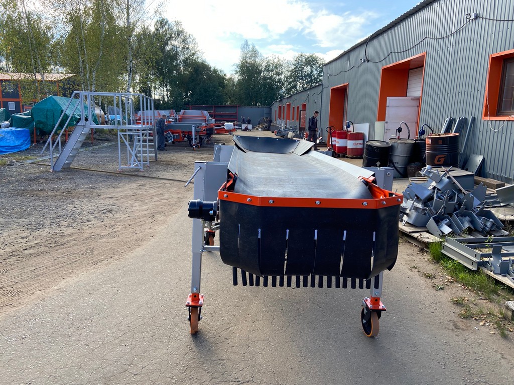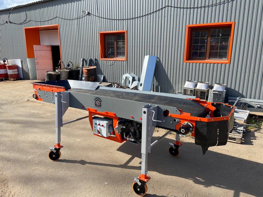 Передвижной односекционный конвейер с гидравлическим приводом и регулируемой высотой выгрузки уменьшенных размеров. Используется для интенсивного перемещения большого объема продукта в ограниченных пространствах как на открытой площадке, так и внутри хранилища, что особенно актуально в интенсивном процессе закладки на хранение. Попутно может применяться в качестве ленточного инспекционного стола сравнительно аналогичных размеров — ЛИ-3.