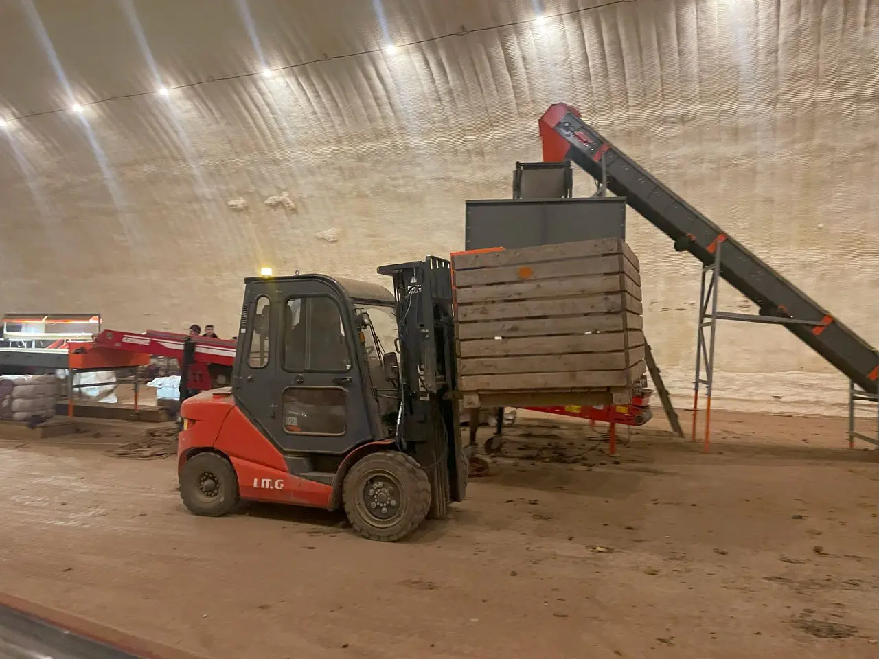 - Вилочный опрокидыватель контейнеров обеспечивает мобильное перемещения контейнеров с продукцией до нужного места.