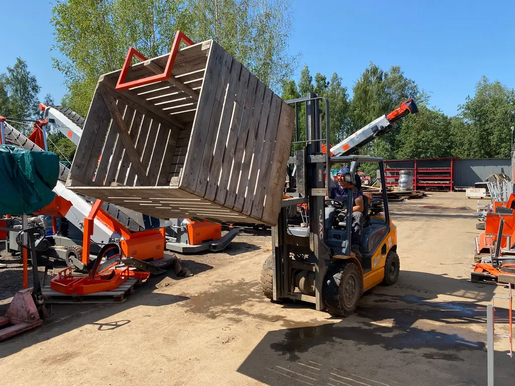 - Высота выгрузки контейнера ограничена только высотой подъема стрелы погрузчика.
