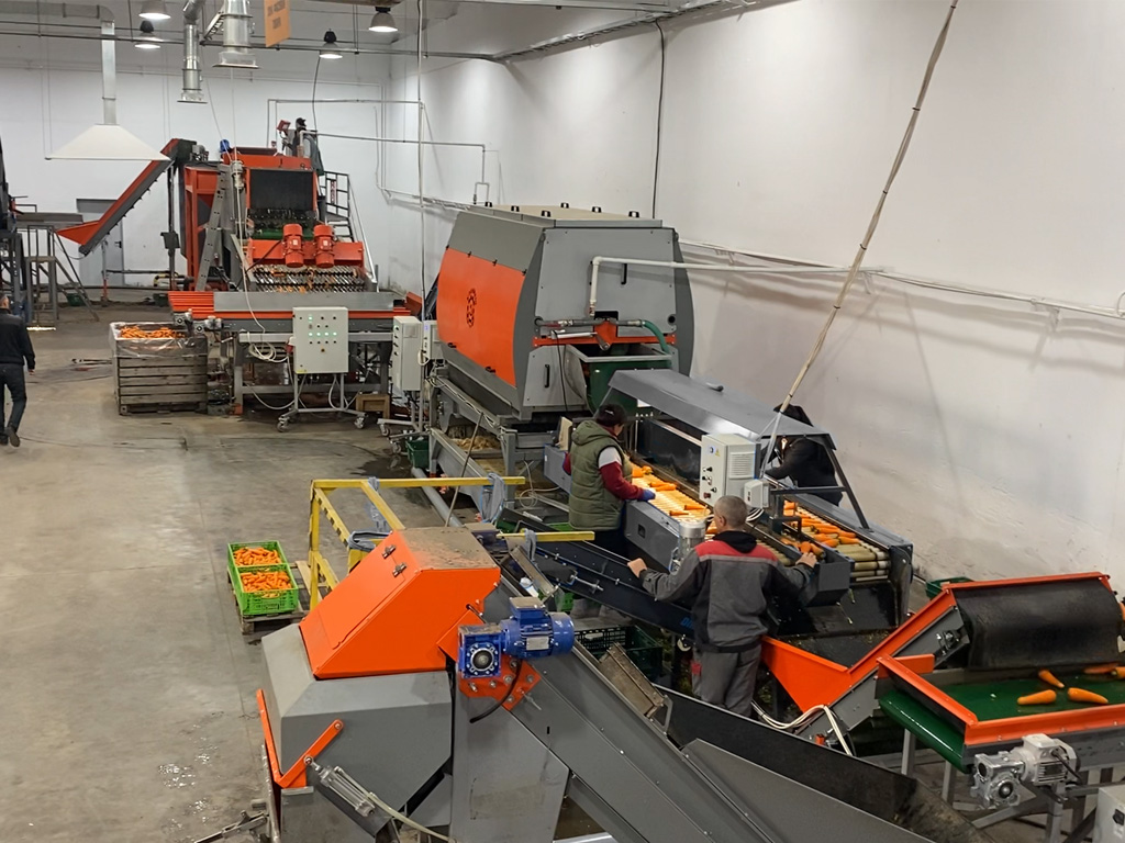 Клинский машиностроительный завод реализовал в крупном агрокомплексе Новосибирской области проект по созданию современной автоматизированной технологической линии предпродажной подготовки моркови, которая управляется с единого пульта. Инжиниринг включал полный цикл предпродажной подготовки продукции — от предзамачивания до упаковки в полиэтилен. На первом этапе продукт проходил через специальные емкости машины предварительного замачивания МПЗ-10/15Ч, где мягкое воздействие воды позволило удалить основные загрязнения и подготовить морковь к дальнейшей мойке.