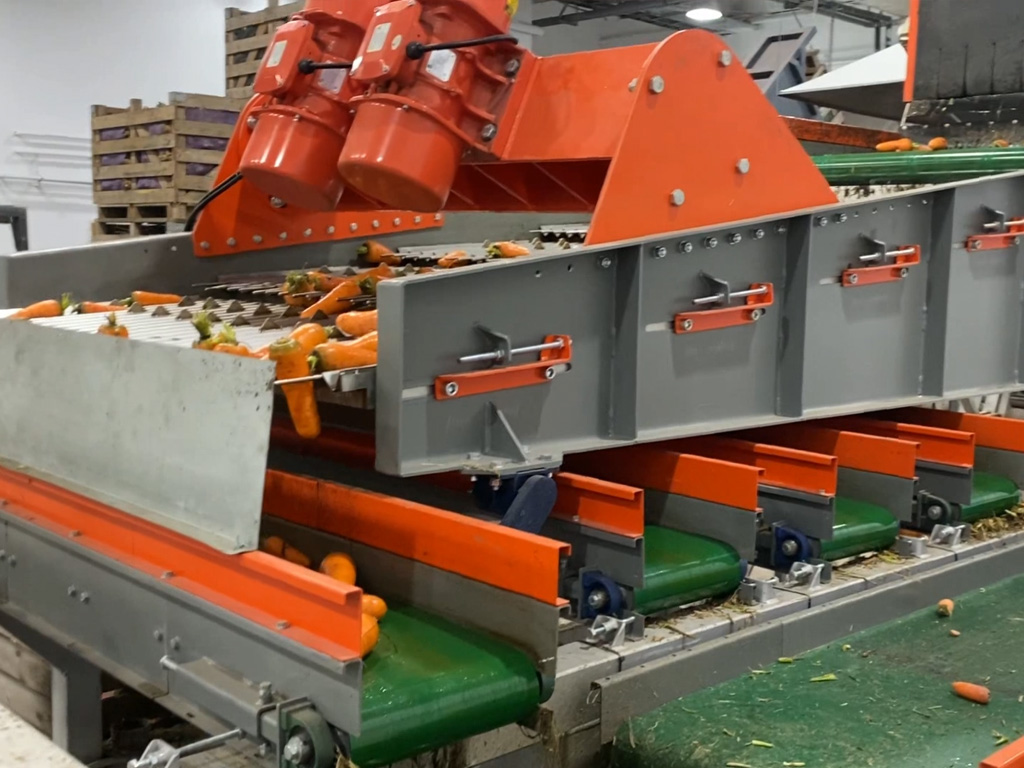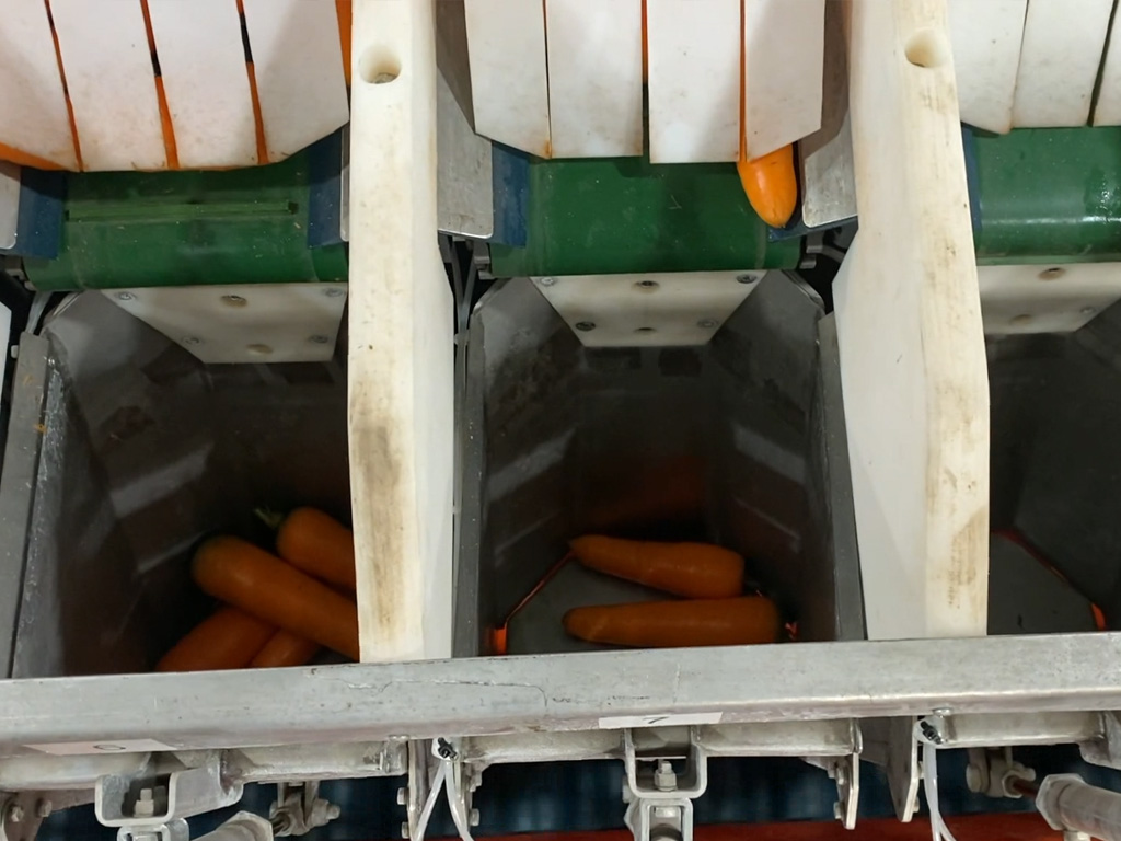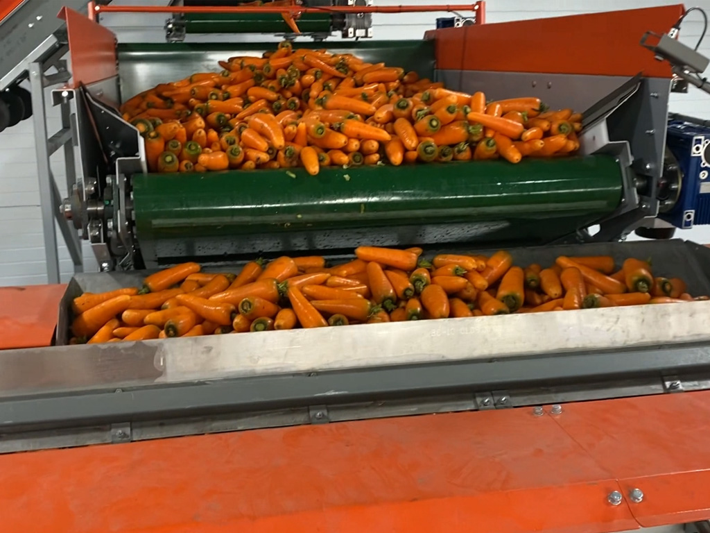 Следующим элементом линии является калибровка по длине. Автоматическая машина калибровки моркови по длине КМД-1500 разделяет корнеплоды на 4 фракции, обеспечивая точное разделение некондиции, и партий продукта для различных каналов сбыта.