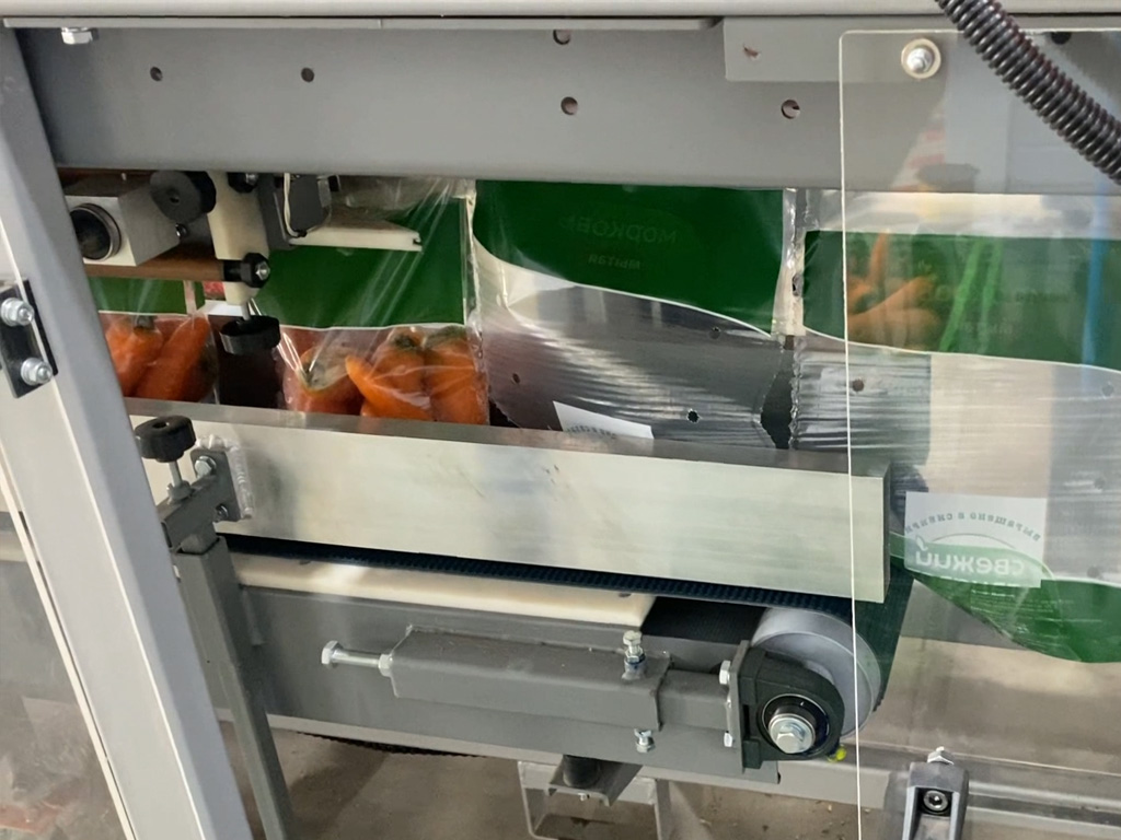 Фасовка в полиэтилен осуществляется при помощи мультиголовочной весовой станции на лентах – ВС-10Л (10 весовых головок), высокопроизводительной машины упаковки в полиэтилен УМП-5 и для равномерной подачи продукта был выбран дозирующий бункер для весовых станций ДБВ-1200. В Европе и Америке такое оборудование, как ДБВ-1200, именуют «Even-flow», что в переводе означает «Ровный поток». Бункер служит в качестве буфера исключающего навал в потоке подаваемого продукта, а также выравнивает и стабилизирует прохождение продукта между транспортирующим и приемным узлами.