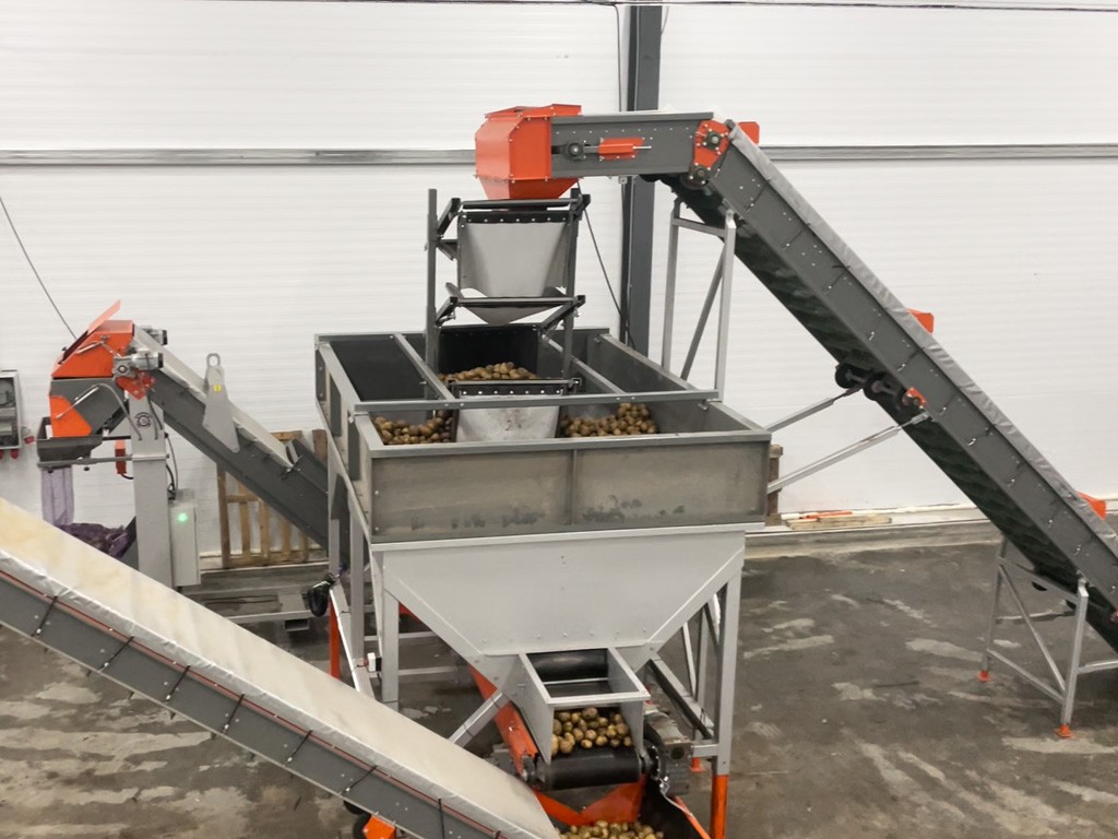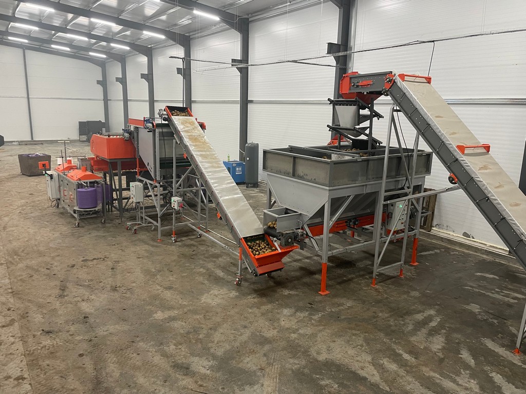 Комплексная технологическая линия приема, сортировки, инспекции, временного накопления и высокоточной фасовки картофеля в сетку в Омской области