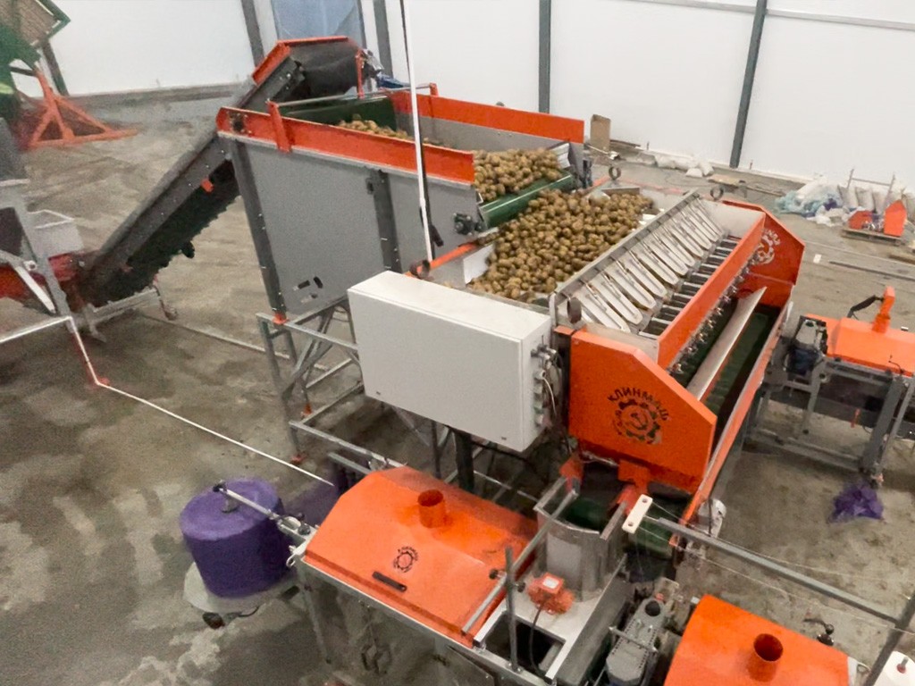 Клинский машиностроительный завод реализовал в одном из агропредприятий Омской области проект по созданию комплексной технологической линии приёмки, инспекции, временного накопления и высокоточной фасовки картофеля в сетку.